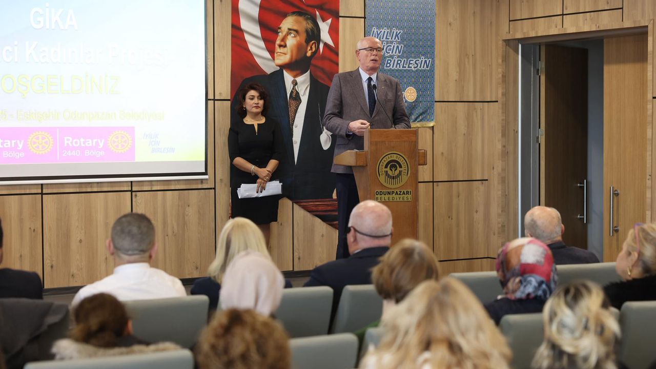 Odunpazarı Belediyesi ve üç bölge Rotary Kulübü iş birliğiyle hayata geçirilen eğitim programında, kadınların ekonomik güçlenmesini desteklemek ve toplumsal kalkınmaya katkı sağlamak amacıyla özellikle e-ticaret alanında eğitimler verildi. Etkinlikte konuşan Başkan Kurt “Gerçekleştirilen işbirliğinden dolayı çok memnunuz. Türkiye’de kadın erkek eşitliği noktasında mutlaka kadınların ekonomik özgürlüğünün sağlanması gerekir diye düşünenlerdenim. Kadınların ekonomik özgürlüğünü güçlendirecek her girişimi desteklemekten mutluluk duyuyoruz” dedi.