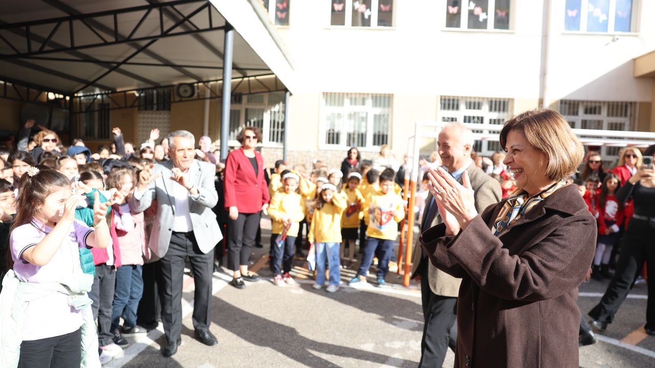 Törenin ardından Ülkü İlkokul Müdürü Rasim Kaya, “Ülkü İlkokulu’nun gurur veren mezunlarından bir tanesi olan Büyükşehir Belediye Başkanımız Ayşe Ünlüce’yi okulumuzda ağırlamaktan mutluluk duyuyoruz.” diyerek Başkan Ünlüce’nin 44 yıl önce aldığı karneyi hediye etti.