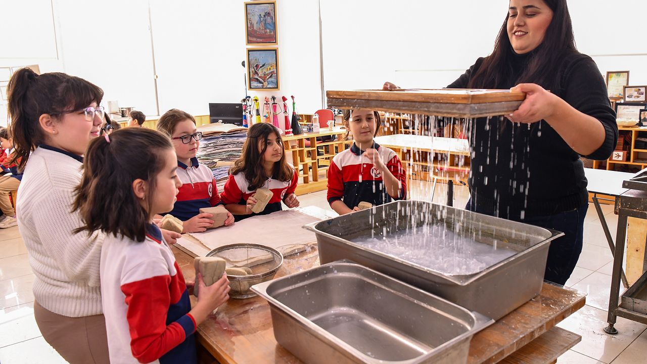 Tepebaşı Belediyesi Kağıt Geri Dönüşüm Atölyesi’nde, atık kağıtların elde geri dönüşüm yöntemiyle yeniden değerlendirilmesine devam edilirken çocuklara da çevre bilinci konusunda farkındalık yaratacak eğitimler düzenleniyor. Tepebaşı Belediyesi hizmet binasında ofislerde kullanıldıktan sonra çıkan kağıt atıkların ve başkanlığa gelen buket çiçeklerin değerlendirildiği Kağıt Geri Dönüşüm Atölyesi’nde atık kağıtlar ve kuru çiçekler bazı fiziksel işlemlerden geçirilerek önce kağıt hamuru daha sonra el yapımı kağıda dönüştürülüyor. Her yıl binlerce çocuk ve genci ağırlayan atölye 2009 yılından beri faaliyetlerini sürdürüyor. Hizmet verdiği günden bugüne 320 atölye düzenlendi, 24 bin 637 öğrenciye eğitim verildi. 2025 yılında ise düzenlenen 140 atölye ile 3 bin 180 öğrenciye ulaşıldı.