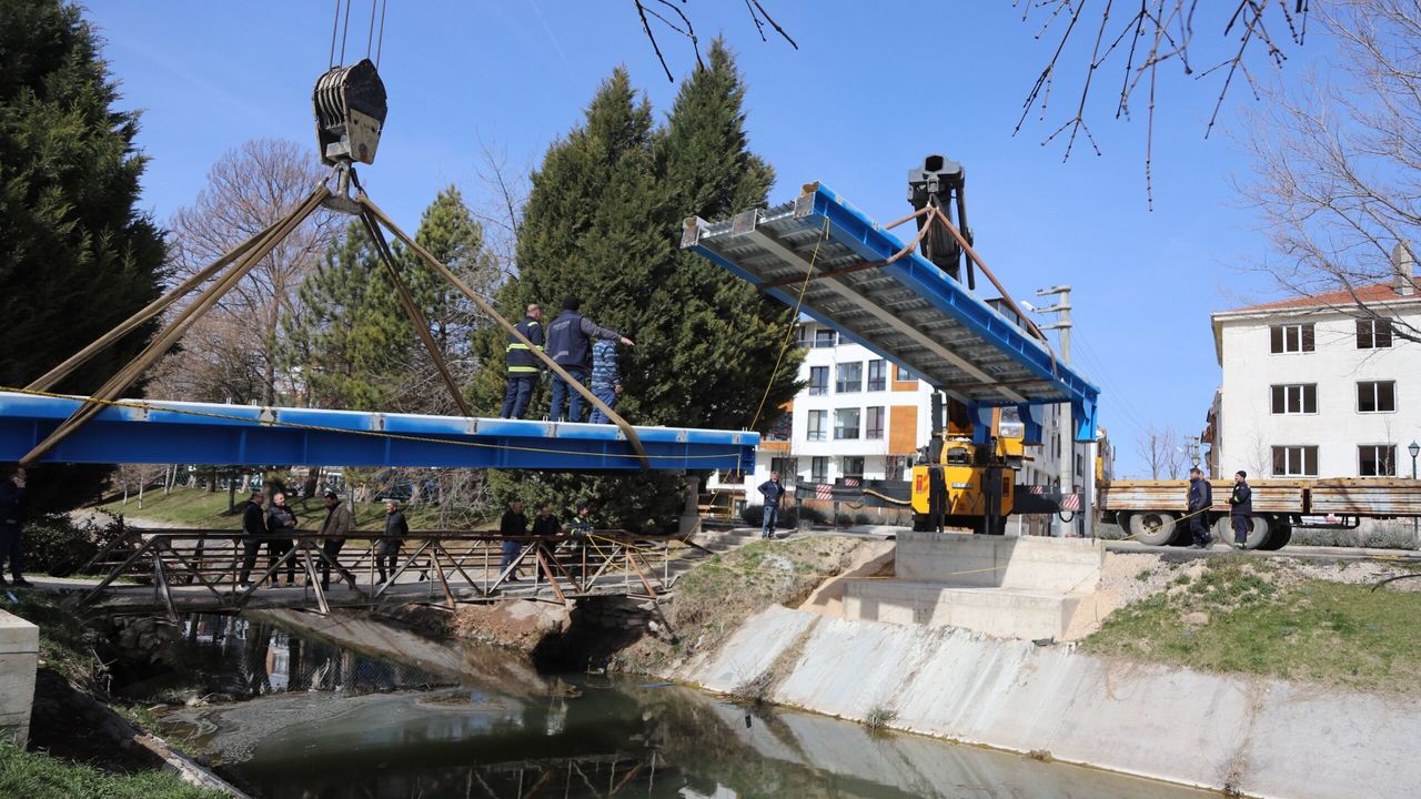 Büyükşehir Belediyesi Fen İşleri Dairesi Başkanlığı ile Park ve Bahçeler Dairesi Başkanlığı ekipleri, geçtiğimiz yıl hizmete açılan ve kısa sürede Eskişehirlilerin uğrak noktalarından biri haline gelen İskele 26’ya giden güzergâhta bulunan mevcut köprünün dar olması ve bölgedeki yoğun yaya trafiğini karşılayamaması nedeniyle yerine daha geniş ve yapısal olarak daha dayanıklı yeni bir köprü inşa ediliyor.