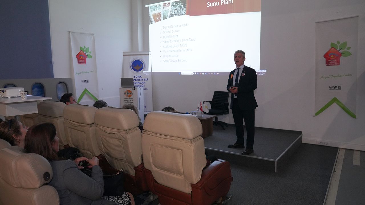 Açılış konuşmasının ardından gerçekleşen söyleşide; dijital dünya ve kadın, dijital şiddet, siber zorbalık, siber taciz, stalking (gizli takip), bilişim suçları gibi konular yer aldı. Kadına şiddetin dijital dünyada da olduğunu ve buna dikkat çekmek amacıyla bir araya geldiklerini belirten Türkiye Bilişim Derneği Eskişehir Şube Yönetim Kurulu Başkanı Av. Murat Osman Kandır, dijital şiddete maruz kalan kadınların sessiz kalmaması gerektiğini söyledi. Kandır, dijital şiddete karşı nasıl korunabilecekleri veya kurtulabilecekleri konusunda bilgi verdi.