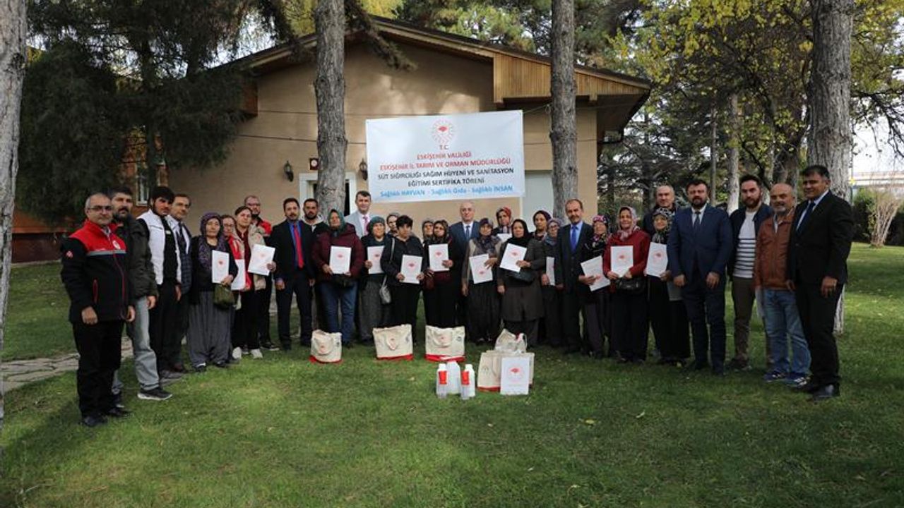 Eğitim sonunda İl Tarım ve Orman Müdürü Yüksel Çil'in katılımıyla düzenlenen törende katılımcılara katılım sertifikası, birer adet buzağı biberonu, sağım öncesi ve sonrası daldırma kapları, meme dezenfektanı ve 25 adetlik mastit test kartından oluşan sağım hijyen seti takdim edildi.